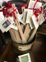 Grydeskeer, sleve med ord som Nærvær, kærlighed, glæde