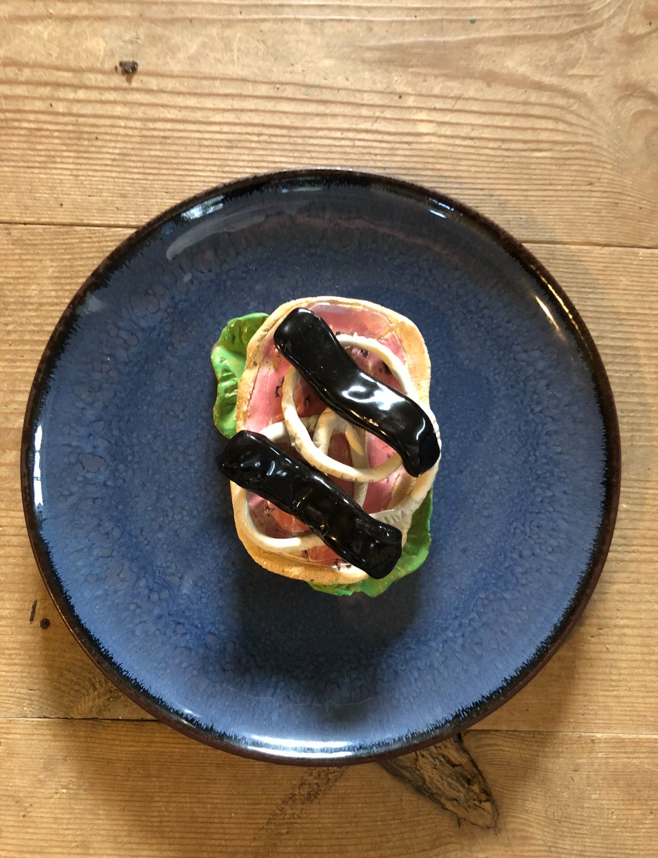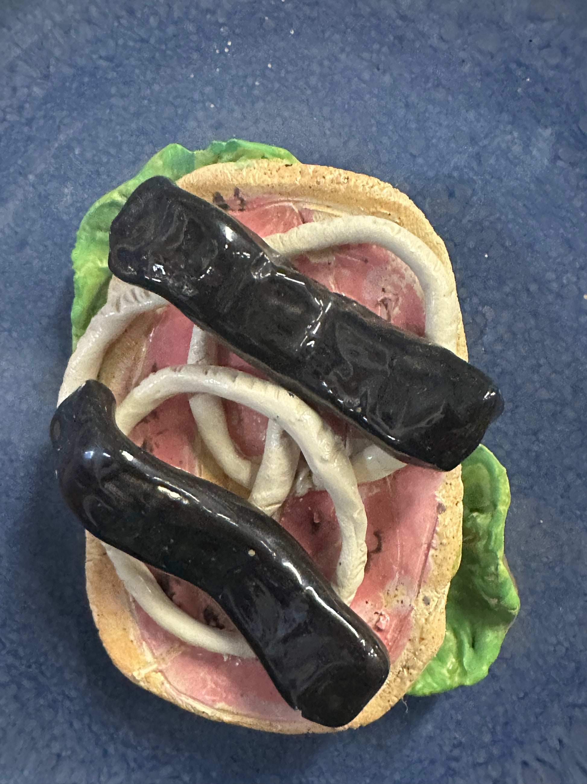 Rullepølsemad i keramik. skulptur til ophæng